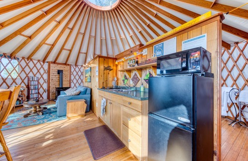 enjoy your own private space in this beautiful, large, 525 square foot yurt with luxury amenities! located on the edge of large bay with 180 degree view, this bay city vacation rental provides a truly unique oregon coast glamping experience!