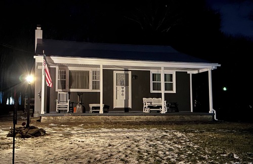 Near Kalihari waterpark, Camelback ski and waterpark, and Mt Airy Casino. Rustic, cozy and clean 2-bedroom cabin. Queen sized bed, single over double bunk bed, living room sofa bed, clean linens and towels included. Front covered porch, rear deck, and yard with fire pit. Enjoy the tranquil surroundings and modern amenities like a gas fireplace, AC, WiFi, kitchen essentials including coffee and creamers. We can't wait to welcome our guests to this marvelous retreat..