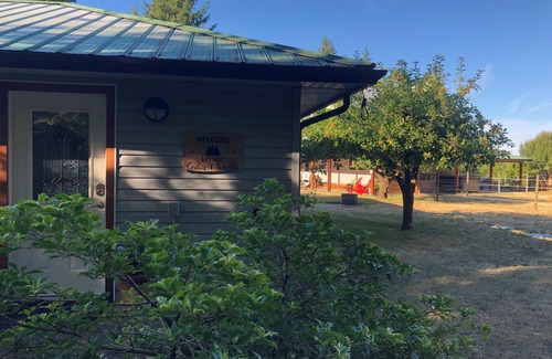 Little CedarWoods guest cottage offers a private setting & No Smoking cozy space. Live edge wood features & very large bathroom ensuite. Enjoy propane firepit on a private patio. Quiet country setting with two nearby lakes & beaches to enjoy. Centrally located on Vancouver Island within 3 hours drive to Tofino\Ucluelet & within an hours drive to Mount Washington & Strathcona Park..