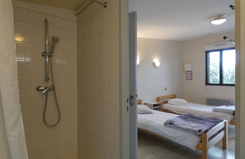an additional room for 2 people is located in an outbuilding with kitchenette, is accessible to people with reduced mobility Room composed of 3 single beds with private bathroom and toilet.