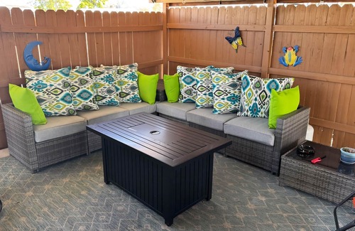 Our vacation bungalow is prepared and maintained with the comfort of our guest's as our first priority! This cozy bungalow has a huge private, covered patio with hot tub, gas fire pit, ping pong, Roku television, gas grill, ceiling fans and outdoor seating and dining to enjoy Arizona's outdoor living and family fun! Inside the bungalow, you will find a renovated, clean 2bd/1bth bungalow with large, fully appointed eat in kitchen, and cozy living room to relax after a day exploring. In 2023 we installed a new HVAC system and it has double pained windows to keep you cozy in the cool winter months and cool during the warm summer days. Bedrooms have cozy carpet, furniture and new beds in February 2023 with high-end linens and cozy duvet comforters, all cleaned between every guest. Large fully fenced lot has plenty of parking for motorcycles, ATV's, boats or RV with full hook ups! Quiet neighborhood, we know all the neighbors. It is just minutes from I60 and the I202 loop and many restaurant and shopping options all within close proximity to this home, ask us for recommendations. Easy shot over to the east valley baseball spring training stadiums; the Renaissance festival in February/March and many other events. If you would like to enjoy the gorgeous outdoors here in Arizona you are 10-15 minutes from recreation in the Tonto National Forest or Usery Park!.