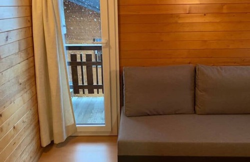this apartment is very well situated in the charming village of saas fee Beautiful views from the windows and 3 large balconies. One bedroom with double bed and bunk bed and sink. One small living room with double sofa bed. Both bedroom and living room have access to a balcony. A separate kitchen with table and chairs and also access the another balcony. The Bathroom has a shower unit. The hall comprises a wardrobe. This apartment has a small lobby with apartment 6 and so it is possible for a larger group to book apartment 5 and 6 and make it into one large apartment which can sleep up to 10 people comfortably. Some weeks in winter there is a minimum stay of 7 nights. Please ask if interested.
