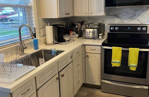 this lake getaway is stocked with bed linens, towels and basic cooking needs, spices, sugar, coffee, tea, cooking oil Please, no smoking, no pets or large parties.