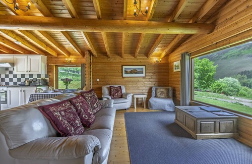 Escape to the tranquility of Cragdhu, a charming two-bedroom self-catering log cabin perched high on a scenic hillside, offering breathtaking 360° mountain views. With a private setting and rustic charm, Cragdhu is a favorite among returning guests who come for the peace, comfort, and natural beauty.The cabin comfortably sleeps up to 5 guests, with two bedrooms - a cozy double with en-suite shower room/bathroom and a twin bedroom - plus a fold-down single futon in the living room for additional flexibility.Inside, you'll find an open-plan living and dining area with comfy couches, ideal for relaxing after a day of exploring. The fully equipped kitchen includes a stovetop with convection oven and broiler, microwave, full-size refrigerator/freezer, washer, kettle, toaster, and all essential dishes and silverware. A separate bathroom features both a bathtub and a shower.For true relaxation, enjoy your private sauna just off the living room. Step outside to the south-facing wood deck, where you'll find a charcoal grill and outdoor seating - perfect for outdoor dining against a stunning Highland backdrop. And for the ultimate indulgence, soak in your private outdoor hot tub under the stars.Please note: pets are not allowed and smoking is not permitted inside the cabin..