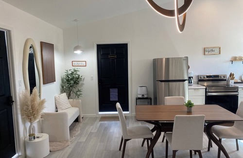 guests will enter their accommodation through the main lobby (a shared space) and make there way to their private designated dome The lobby has a a full kitchen featuring a sink, refrigerator, freezer with icemaker, oven with range, and a convenient dishwasher to make cleanup a breeze. Guests who book the entire space will be given access to the laundry room. Each dome has a private separate code for additional safety. The lobby is a shared space and other guests may be utilizing it as well. Guests have a private kitchenette in each dome however, the kitchen sink and dishwasher are located in the lobby space.