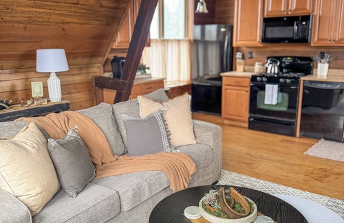 newly renovated 1930’s historic barn with all the modern amenities you could need The loft is accessible by stairs. The open floorplan features a fully stocked kitchen, comfortable living room with a full size sleeper sofa for additional sleeping options. A full dining table with seating for 4 and a fully furnished kitchen with all the basics is also available for your convenience.