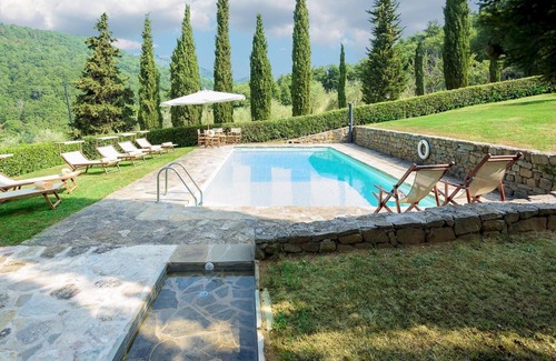 crognole stands on the top of a gentle 500 m-high hillslope, surrounded by the dream landscape of the unique hills of chianti, with dense woods, olive trees and immense rows of vines that stretch to the horizon It is a 16th century rural Tuscan house in stone which has been renovated following tradition with spacious air-conditioned bedrooms with private bath and with a cosy living area with comfortable armchairs gathered around a large fireplace and surrounded by a green garden where guests can relax in all tranquillity under the panoramic pergola and by the fully-equipped pool. The house stands independantly within the prestigious setting of the Castello di Albola estate with spreads over 137 hectares of fertile land which every year produces a top quality extra-virgin olive oil and a select nectar exported throughout the world which can be tasted directly in the original cellars of the beautiful medieval castle which dominates the estate and which once belonged to important noble Tuscan families and which is situated about 2 km from the property. The house is 5 km from the renowned borgo of Radda in Chianti (with shops for daily needs, restaurants and bars) with many other fantastic places to explore in the surrounding territory: Volpaia, Panzano, Gaiole and Greve with their breathtaking picture-postcard views and a unique range of artistic, historical, food and wine marvels. Facilitated by the beautiful panoramic roads, daily excursions to Siena, Florence, San Gimignano and Volterra can be easily arranged.