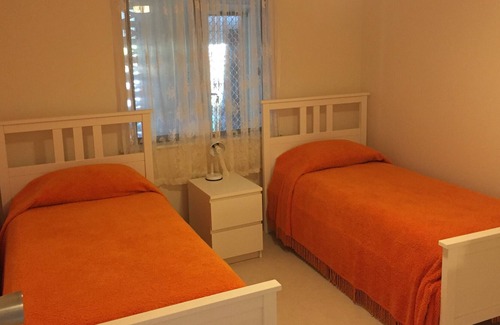 main bedroom has a queen size bed, second bedroom has two single beds and there is a sleep out with a single bed All bedrooms have ceiling fans and air conditioning.