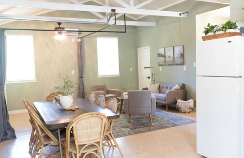 Get ready to relax in this fabulous dairy barn and parlor in Montgomery. This cozy retreat features 1 bedroom with 1 full bed and 1 twin bed, a living room with a comfy murphy bed, and a bathroom with a shower and hair dryer. With amenities like AC, WiFi, heating, iron, and a washing machine, guests can unwind in this tranquil setting. Enjoy your time in Montgomery at our cabin..