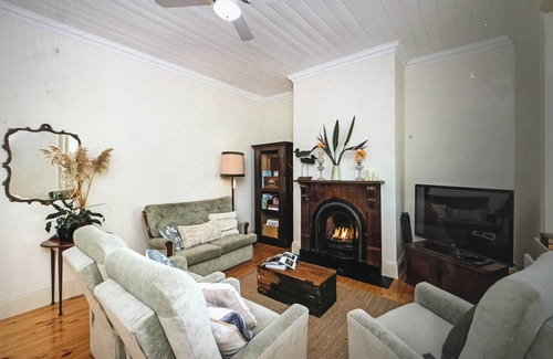 the cottage is a beautifully restored 1890’s cottage located on the shores of lake albert From the front veranda you have spectacular views over Lake Albert and the gorgeous cottage garden. Indulge in a generous breakfast of freshly baked bread, farm eggs and much more to be prepared at your leisure and home-made biscuits to dunk in your plunger coffee. In summer pick mulberries and pears straight from the trees outside your bedroom window. You have a private backyard with undercover BBQ and dining area and two kayaks for you to explore the lake with.