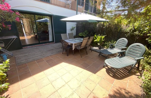 With a capacity for 7 people, this house is only 50 meters from the beach. Fully equipped and comfortable, with access to the communal area with pools.The house is distributed over two floors. On the ground floor, you will find a cozy living-dining room with a fireplace and electric radiators, a television (Spanish), and access to the private terrace-garden, which is fenced and equipped with garden furniture and a barbecue.Additionally, on this floor, there is a separate kitchen equipped with everything you need, such as a refrigerator, microwave, oven, freezer, dishwasher, tableware/cutlery, utensils, coffee maker, hand blender, and toaster. There is also a guest toilet on this floor. Although the garage is closed, it is easy to park right in front of it.On the upper floor, there are three bedrooms, one with a double bed, another with bunk beds and a single bed, and a suite with a double bed. The main bathroom has a shower and washing machine, and the suite has a bathroom with a bathtub and a small balcony.Our accommodation is located in Mas Pinell, a privileged area of the Costa Brava in Catalonia. You can explore the charming nearby towns of Torroella de Montgrí, Pals, and L'Estartit. The nearest supermarket (Raül Girona) is less than 6 km away. Furthermore, within 3 km, you will find an excellent selection of restaurants to enjoy the delicious local cuisine.Come and enjoy an unforgettable vacation in this cozy place right by the beach!The garage is not available for guests..