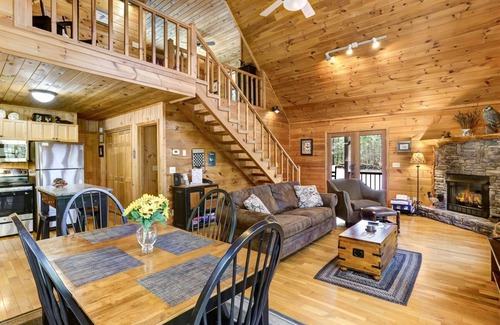 this enchanting cabin boasts a king bed in the master loft, complete with a private bath, and a cozy queen bedroom on the main level, accompanied by a full bath With a gas log fireplace, streaming TVs, gas grill, and rustic decor, it's the perfect setting for a romantic escape. Come rejuvenate your spirit amidst the peace and quiet of this private mountain getaway.