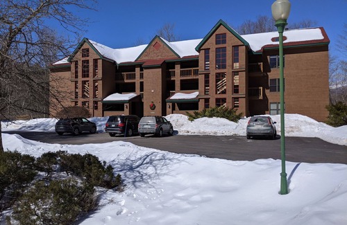 This lovely 3 bedroom, 2 bath condo (second floor/end unit) sits directly on the beautiful Pemigewasset River. The master bedroom includes a queen bed, flat screen TV and attached master bath. The bunk room accommodates 4 and shares a bath with the other bedroom which has a full bed. The open concept living area contains a wood burning fireplace and a flat screen TV with cable (and DVD player), a fully-equipped kitchen, dining room, washer/dryer. Sliding doors lead to a deck that overlooks the river.