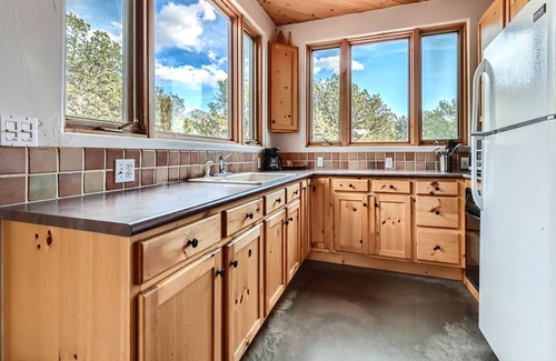 When you step through the door at the Casita, you feel the welcoming energy of this sweet place. She was created using architectural principles of sacred geometry. The views of the Sangre de Cristo mountains, Kit Carson especially, are breath-giving. The house is set on 2 1/2 acres of land, bordered by National land and serenaded by the soothing sounds of Willow Creek. The Crestone community is shared by a diverse range of spiritual and new age centers, and is also a mecca for alternative, green and sacred architecture. With prolific wildlife and exquisite nature, this is an ideal location for your retreat.