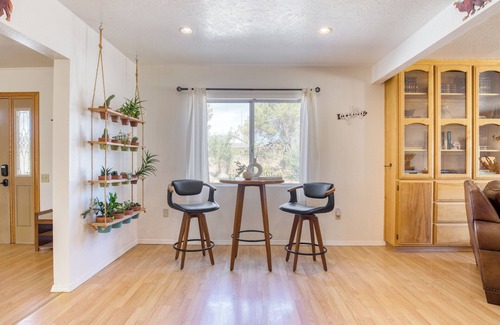Escape to a lovely Joshua Tree retreat! This home is near the park's entrance and offers beautiful desert views. It's a peaceful and private place, close to shops and galleries in town and not far from Palm Springs attractions.