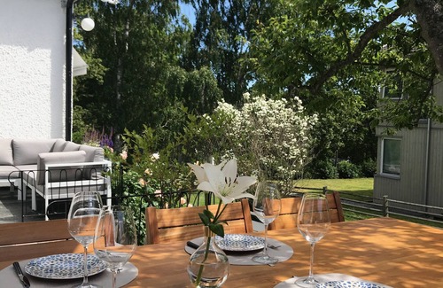 put on your bathrobe and walk down to the little beach for a swim before breakfast in the surrounding private garden Take the car, bus, ferry or bicycle to the city to enjoy one of the many museums, restaurants, and sights. When you are tired and exhausted of the crowds - take a 10-minute drive to the house and relax in the quiet surroundings. Have a barbecue on the terrace with the big grill. Walking distance to the popular beach Boo-badet, from there you can take the ferry downtown or further out in the archipelago. The house is located in a very silent and safe neighborhood, surrounded by similar houses, which are far away enough not to disturb each other. Don’t be surprised if you are visited by deer or rabbits. The close by national park or the museum Artipelag ( is wonderful for a day trip. Bicycles, Wifi internet, sat TV, well-stocked kitchen, bikes.