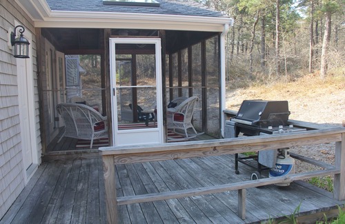 This beautifully redesigned house is on a quiet cul-de-sac located close to the beach and near Mashpee Commons. Ponds, nature walks, marinas are all close by. Relax in the screened porch or grill on the deck after a relaxing day on the Cape. There is a huge, modern kitchen with granite counters, an eat-in counter and an inviting dining room, making entertainment easy and fun. The house has a new central AC/Gas heat system for your comfort. Relax in the family room, lounging on the sofa or rocking in the wicker chair, watching HDTV, connected by satellite channels and sound system, or surf the internet and send emails with WIFI service. There are hardwood floors on the entire first floor and soundproof carpet upstairs. The convenient and quiet master bedroom is on the first floor, with a Sleep Comfort bed (what's your number?) and its own private, tile floored, marble vanity bathroom. A convenient half bathroom for visitors featuring an ecologically friendly toilet! Upstairs, there are two huge bedrooms, each with its own window seat looking out the dormers the quiet street. Linens and towels are provided. This house is located in Seabrook Village, a well maintained and manicured neighborhood with lots of places to walk or ride. One block away are two connected ponds teeming with fish. South Cape Beach, with a view over Nantucket Sound all the way to Martha's Vineyard is a short 5 minute drive. Mashpee Commons, a destination shopping center, with movie theaters, is also a short 5 minute drive. Mashpee is located between Falmouth and Hyannis, convenient to both Cape bridges..