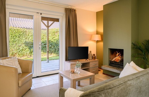 the bungalow has 2 living rooms, 2 kitchens and a conservatory The living rooms have a sitting area, fireplace and television. Both kitchens are equipped with a dishwasher, fridge with freezer and filter coffee machine. The conservatory serves as a common dining room and features two spacious dining areas with seating for 14 people in total.