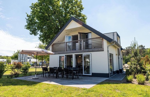 This chalet sleeps 10 and has a living room and open-plan kitchen. The open kitchen includes a coffee machine and a dishwasher. There are five bedrooms in all, one of which is located on the ground floor and four upstairs; each with single boxspring beds. There is a separate toilet in the hall and two bathrooms with a shower. The bungalow has a furnished garden and two private parking spaces. Various homes have free Wi-Fi..