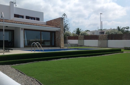 beautiful villa located and connected in a perfect area to enjoy the island and its best beaches The house has a large green grass area where you can sunbathe and enjoy a good swim in the pool. Even having a swimming pool, you can enjoy three or four beaches and a leisure area three minutes away on foot without having to take the car. A ten minute drive is Cala Bassa with one of the best beach club on the island and Cala Compta etc, one of the areas with the best beaches on the island. The tranquility and leisure all within reach.