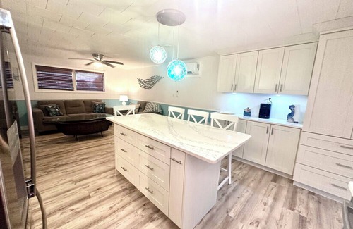 this cozy 3 bedroom, old florida waterfront home soothes the soul with it's coastal vibe and local nautical themes! newly remodeled and situated on a direct gulf access canal