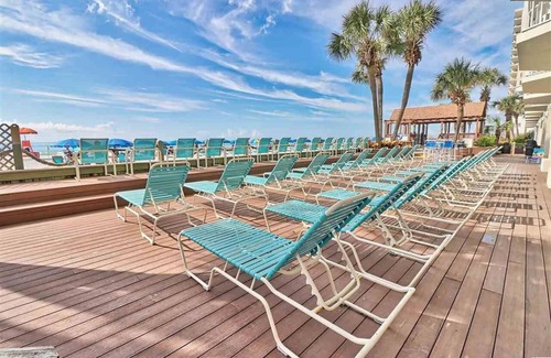 this fully equipped 1565 sq ft condo easily sleeps 8 to 10 guests and allows you to enjoy your vacation with conveniences of home All linens are provided for your stay (even beach towels), so you have less to pack! Don't worry, our housekeeper keeps our condos clean--see our reviews! You will arrive to find sheets freshly laundered and folded on the end of your bed. Towels and extra sheets can be found in the master bedroom closet. Full size front load washer and dryer are inside the condo, vented to the outside of the building. You are welcome to use them to keep your laundry fresh during your stay. The kitchen is well stocked, has all main appliances, and you will find both a Keurig for your favorite K-cups and a standard ground coffee maker. There is a large dining room table and kitchen bar area for eating and family game night, with some games kept in the condo for fun. The flat screen TVs furnished in living room and bedrooms have a nice cable package, and personal wireless high speed internet is provided with the private password located on the refrigerator. We have central heat and air, and an electric fireplace that can also be used for heat. Manage your comfort with ceiling fans in all rooms. Our three bedrooms (king and two queens), spacious living room with queen sleeper sofa, and three rollaway cots help provide usable sleeping space for up to 11 guests. Full-size closets and plenty of drawer space are provided for your clothes if you like to unpack during your stay. A landline telephone can be found in the master bedroom (for emergency and local calls only), and a small safe is on the top shelf of the master closet for your valuables if you'd like to use it . A full master bath with walk in shower, a shared full bath with tub/shower, and a hallway entry half bath make up the 2.5 bathrooms, all with exhaust fans vented to the outside of the building. The main entry door has a safety chain and peephole with deadbolt, and there are locks on all inner doors and balcony sliding doors. Some beach supplies are provided for your convenience in the master bedroom closet such as beach chairs, umbrellas, beach toys, boogie boards, cooler, etc. Seasonal chair/umbrella rentals are also available (at your cost) from the life guards stationed on our beach. Handicap beach wheelchairs are FREE and available for reservation ahead of time. Walker, shower chair, and toilet rails are stored in unit if needed, as well as a 4MOMS playpen.