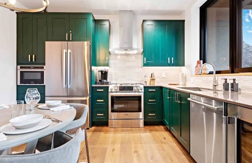 this two-bedroom condo has a gas fireplace in the living room, a gourmet kitchen with high-end amenities, including a gas oven, and a dining area for four or more It is close to The Westin Riverfront Express Gondola. Two guest suites, one with a king-size bed and the other with a twin bunk bed OR a queen bed, each with an attached spa-inspired bathroom, a washer/dryer, hardwood flooring, designer lighting and underground parking for one vehicle are other features. Guests may access The Westin Riverfront's top-notch amenities, with a daily resort fee of $45, which include an outdoor pool, hot tubs, fitness center, a fire pit, and ski valet, while also taking in the beautiful Beaver Creek Mountain views from the deck that is equipped.