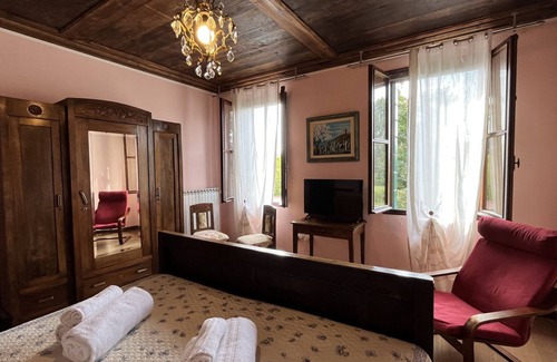 Ca' de Franceschi is the ideal solution to spend an holiday, or even a few days, totally immersed in the quiet, with a spectacular view of the Euganean Hills. The apartment is on the first floor of a well restored house preserving the style of the early twentieth century. The two rooms, one double and one twin (or double on request), are noted for the beautiful wooden ceiling and original furniture, which create an intimate and familiar atmosphere. A comfortable kitchen and a large bathroom with shower complete the house. Very useful and appreciated the outside of the house, especially in warm weather, with a table at the service of guests. The location is ideal for exploring the beautiful area of the Euganean Hills, perhaps with a bike, own or rental. The apartment has an open private parking..