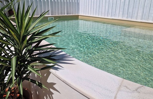 Yes, this Discover this charming apartment. has a swimming pool. Check the Facility Overview section for details about the pool and other available facilities.