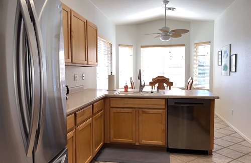 Dog-friendly desert home with mountain views, enclosed yard, grill, W/D, and AC is located in Rancho Vistoso. Dog-friendly desert home with mountain views, enclosed yard, grill, W/D, and AC provides accommodation, featuring Laundry, TV, Wellness Facilities, among other amenities. This House features Laundry, TV, Wellness Facilities, to make your stay a comfortable one.