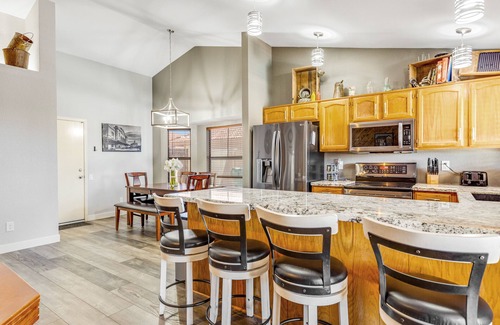 an unforgettable vacation to mesa is just what you need to let all of life's cares slip away, so make your way to mesa oasis and live like a local in the alta mesa community Boasting a sparkling private pool (nine-and-a-half feet deep with heating and cooling by request), outdoor seating, a covered patio, and a firepit, you will have no trouble soaking up some sunshine in your very own backyard! Inside, you will slip right into vacation mode with all of the comforts of home and more including a full kitchen, a game table for cards, and an accommodating living room complete with a plush black leather sofa, a matching recliner, and a flatscreen TV to stream favorite movies on when the stars come out. Beautiful bedrooms await for everyone to get a bit of rest and privacy each night.