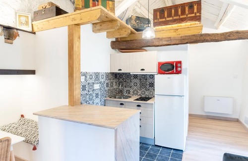 domus aurea suite is a project for the rehabilitation of a house from the year 1900, according to current energy and comfort standards A loft with high ceilings and exposed beams, bright and large windows, which has a kitchenette with a sofa bed, fully equipped (ceramic hob, microwave, washing machine, dishwasher, coffee maker, toaster and all the necessary utensils). The double bedroom is a simple space where architecture takes center stage, creating an intimate and cozy atmosphere. Bathroom equipped with shower tray. The apartment is equipped with both heating and cooling by means of aerothermal energy. Enjoy the tranquility and a decoration that is carefully detailed but respectful of tradition..