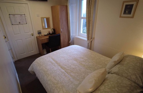 this room is our smaller double room. with limited space for any seating. it has an en-suite shower room . double bed . flat screen tv with over 150 satellite channels. plus tea and coffee facilities