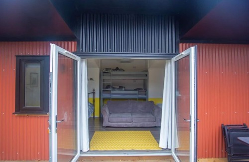 "dougie's", 1-room chalet on the ground floor Object suitable for 2 adults + 3 children. Comfortable and modern furnishings: open living/dining room with 1 x 3 bunk beds, 1 double bed, dining table, shower/WC and TV (flat screen). Exit to the veranda. Kitchenette (2 hot plates, kettle, microwave). Small patio. Terrace furniture. Beautiful view of the river. Parking. Please note: suitable for families. Fridge without freezer, non-smoking house. TV only EN. Smoke alarm.