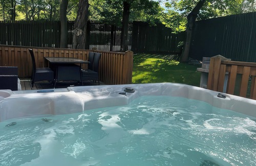 dovestone luxury lodge consists of an open-plan kitchen/living/diner with electric oven, gas hob, microwave, fridge/freezer, dishwasher, dining seating for four people, and sitting area with smart tv and bluetooth speaker The bedrooms consist of a double with TV and en-suite, and a twin, with a bathroom. Outside, there is an enclosed veranda with decking, furniture, barbecue, and hot tub, and designated, off-road parking for one car. Sorry, no pets. Sorry, no smoking. WiFi, fuel, power, bed linen, and towels are all inc. in rent. Dovestone Luxury Lodge is a pleasant base for a countryside escape. Note: Early check-in and late check-out available for 25 GBP. Note: Travel cot and highchair each cost 10 GBP. Note: Barbecue coals available to buy. Note: 30 GBP pet fee applicable weekly per pet. Note: Hot tub ready to use from 6pm on day of arrival. Note: Extras and packages available from 5 GBP to 95 GBP. This property has a Good Housekeeping Bond of 250 GBP. Arrivals are only permitted on Mondays and Fridays.
