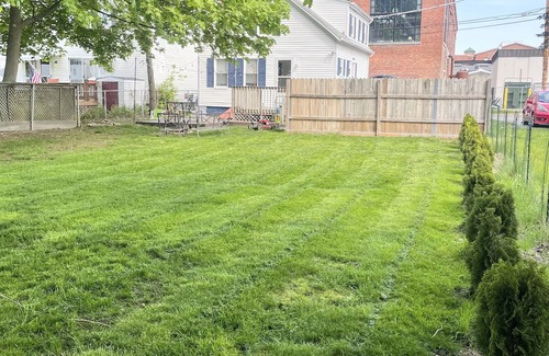 outdoor living: private backyard with patio and string lights to enjoy the summer nights of bristol!