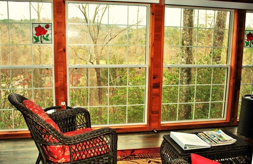 The Reihenhaus is located at the top of a ridge in downtown Helen off Main Street, just above City Hall, and on the same street as the new Georgia Mountain Coaster. Enjoy the spectacular seasonal views of surrounding mountains, and of the Alpine Village! The views are especially beautiful at night with all of the lights from the village glowing in the dark.
