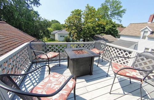 Downtown home blocks to the beach w/king bed, deck fire pit & air conditioning is located in Manistee. Downtown home blocks to the beach w/king bed, deck fire pit & air conditioning provides accommodation, featuring Air Conditioner, Parking, Fireplace/Heating, among other amenities. This House features Air Conditioner, Parking, Fireplace/Heating, to make your stay a comfortable one.