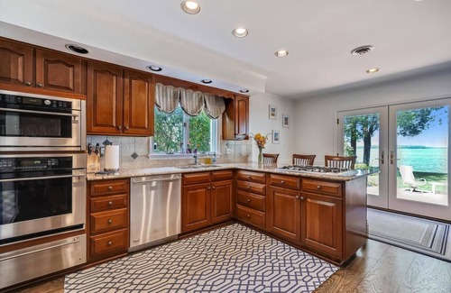 begin your day at riverview retreat with a beautiful sunrise and be amazed with a stunning sky at sunset As soon as you enter this charming cottage you are greeted with wide open vistas of the Miles River from the foyer, living room, sun room, kitchen and dining room. Freshly painted and appointed with modern and comfortable furnishings, bedding and a well-stocked gourmet kitchen, this three-bedroom two and a half bath home is sure to please. Located close (75ft) to the water's edge, where you can fish or crab from the private dock. Crab cages are available for your use as well as 2 kayaks, 2 paddle boards, cornhole boards, and 2 adult bikes to mosey into St. Michaels for ice cream or a little shopping. Or simply relax in the Adirondacks and enjoy the sailboat races and wildlife that frequent, including osprey, turtles, rays and even the occasional pod of dolphin that make their way up the Miles River. st michaels is a 15-minute walk or less than 5 minutes by bike with all the conveniences, including shopping, restaurants, wineries, the chesapeake bay marine museum and more!