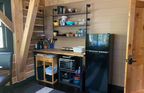 Dragonfly is a beautiful new timber frame home designed and built by master timber framers from the North Shore. With 2 private entrances it’s perfect for 2 couples, families of 4-7, North House Folk School students, artists, or North Shore adventurers who either want two self-contained units or one larger shared space. Situated on 3 acres of secluded birch, aspen, cedar and fir, it’s 1.5 miles away from downtown Grand Marais yet tucked away in the tranquility and privacy of the North Woods.