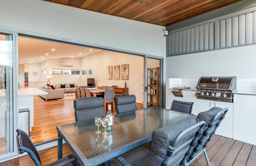 the decked outdoor entertaining is the perfect place to relax and bring the family together boasting built in bbq, louvered blinds and stunning views through the peppy trees to geographe bay opposite