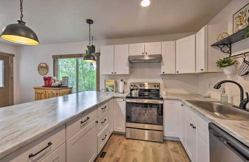 Disconnect to reconnect at this idyllic 2-bedroom, 1-bath vacation rental in the heart of central Colorado. Mere minutes away, you'll find an abundance of scenic trails and state parks, and a bit further, all the sought-after sights of Colorado Springs. Wherever you and your group choose to spend your days — whether it be hiking in Mueller State Park or exploring historic gold mines in Cripple Creek — rest easy knowing you'll come home to this secluded cozy-cabin-in-the-woods.