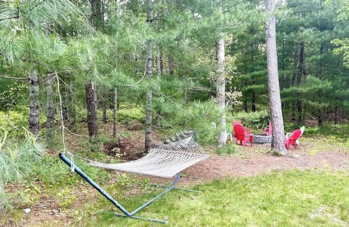 enjoy our big private backyard setup with a hammock, patio and a cozy fire-pit
