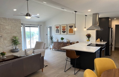 Nestled under the starriest of Hill Country skies, your stay will be an elevated experience of seclusion meets the ATX nightlife. Just minutes away from the original world famous Salt Lick BBQ, wineries, breweries/distilleries and only 20 mins from downtown Austin. Fully renovated 3 bedroom 3 full bath home in the heart of wedding destination, TX. Open concept kitchen & living room with plenty of seating to entertain your entire crew. relax on the back deck while enjoying a quiet view!