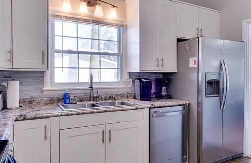 enjoy urban flair with a blend of cozy comfort at this 4-bedroom, 1-bath vacation rental in fishers, in The house has a prime location within walking distance of local breweries and restaurants, plus easy access to the area's top attractions like Lucas Oil Stadium and the Indianapolis Motor Speedway. When you aren't out exploring, warm evenings are best spent relaxing by the fire pit or grilling out on the deck. book today!