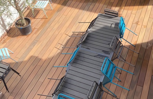 large duplex apartment, 70 m2 terrace, very bright Completely renovated in a traditional 1930s building. In the city center, everything within walking distance: shops, beaches, hiking trails, casino, mini golf, the port, ... A 'villégiature' insurance certificate is required..