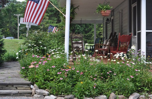 Built in 1892, Lakeshore served as an Inn welcoming decades of Eagles Mere visitors. Lakeshore retains the expansive porch of a classic cottage and offers proximity to the lake and hiking trails. Entry for Unit C is from the front porch. This first floor apartment has a living room/dining/kitchen combo with stove/oven, full refrigerator, dishwasher and microwave, dining table with seating for four and a fully furnished with small appliances, dishes, cookware, utensils and glassware. There is a mountain stone patio with a gas grill and dining area in the lower yard. Step out the front door and sip a cocktail while rocking on the porch. The bedroom has a queen bed with a new pillow-top mattress and window a/c unit. A separate laundry room has a full-size washer and dryer. The bathroom has a stall shower. There is plenty of parking and two driveways. New mattresses, towels and linens provided. We offer a full SEVEN DAY WEEK RENTAL (check out Sat a.m.) Don't miss out on Friday a whole other day and night and all of Friday's activities! Minimum rental is six days June 20 - August 29. Two night minimum during the spring and fall seasons. Cleaning and pet fee is shown in your total stay calculation. There is a lake fee per the EM Lake Association (private lake) payable at the beach desk (mid June - Labor Day). Please visit their website: emalake.org for rules, rates and amenities offered..