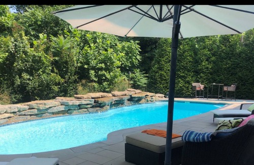Hello and Welcome to our Fabulous East End home with a Pool with a waterfall! This home features several areas for you and your guests to enjoy the ambiance. This home has 5 bedrooms and 4.5 bathrooms. The heated in ground pool and hot tub will be the highlight of your stay. From the 23' ceilings in the living room to the dual outdoor patio areas, this place will be the highlight of your stay in Louisville. This place would be great for friends or family to take a break. This is a great single family residence!.