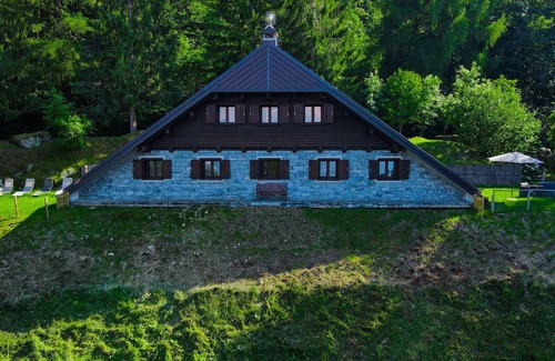 [CIR013250-CNI-00168] Chalet with a particular architecture, built entirely of stone and wood, it almost seems that it wants to hide among the trees of the luxuriant forest that surrounds it. Al Serai is built on two levels, on the ground floor there is a warm and welcoming entrance typical of mountain wooden houses, a kitchen complete with stove, electric oven, refrigerator, a large dining room with fireplace and sitting area, a practical laundry room, a double bedroom and a complete bathroom with shower. A private garden, an indoor parking space. On the first floor there are two beautiful and large double bedrooms with two single beds in each bedroom, a second complete bathroom identical to that of the ground floor. From every room of the chalet you can enjoy a spectacular view of the lake, of the promontory of Bellagio until you get lost on the horizon towards the upper lake. All around the property are the woods of Monte San Primo. Ideal for a group of friends or a large family, for those who love nature, trekking, cycling, mountain biking. But also for those who want total relaxation just a stone's throw from the more mundane Bellagio. Reaching the chalet is very simple since it is located on the road that leads to the top of Monte San Primo..