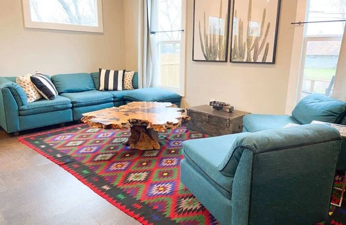 the eclectic bungalow is a cozy three bedroom, two bath house located in historic downtown mckinney Guests can walk or drive .9 miles to the McKinney Square, which features restaurants, bars, shops, and live music. The bungalow offers all of the comforts of home in a clean, colorful, light-filled environment.